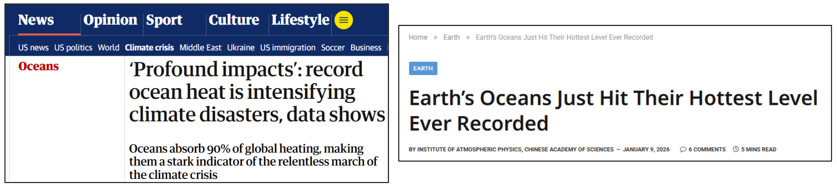 As we kick off 2026, the climate alarm machine is already in overdrive. A new paper published in Advances in Atmospheric Sciences claims that ocean heat content (OHC) reached another “record high” in 2025, with headlines screaming about “profound impacts” and “intensifying climate disasters.” Outlets like The Guardian warn of record ocean heat fueling disasters, while SciTechDaily declares Earth’s oceans just hit their hottest level ever recorded.