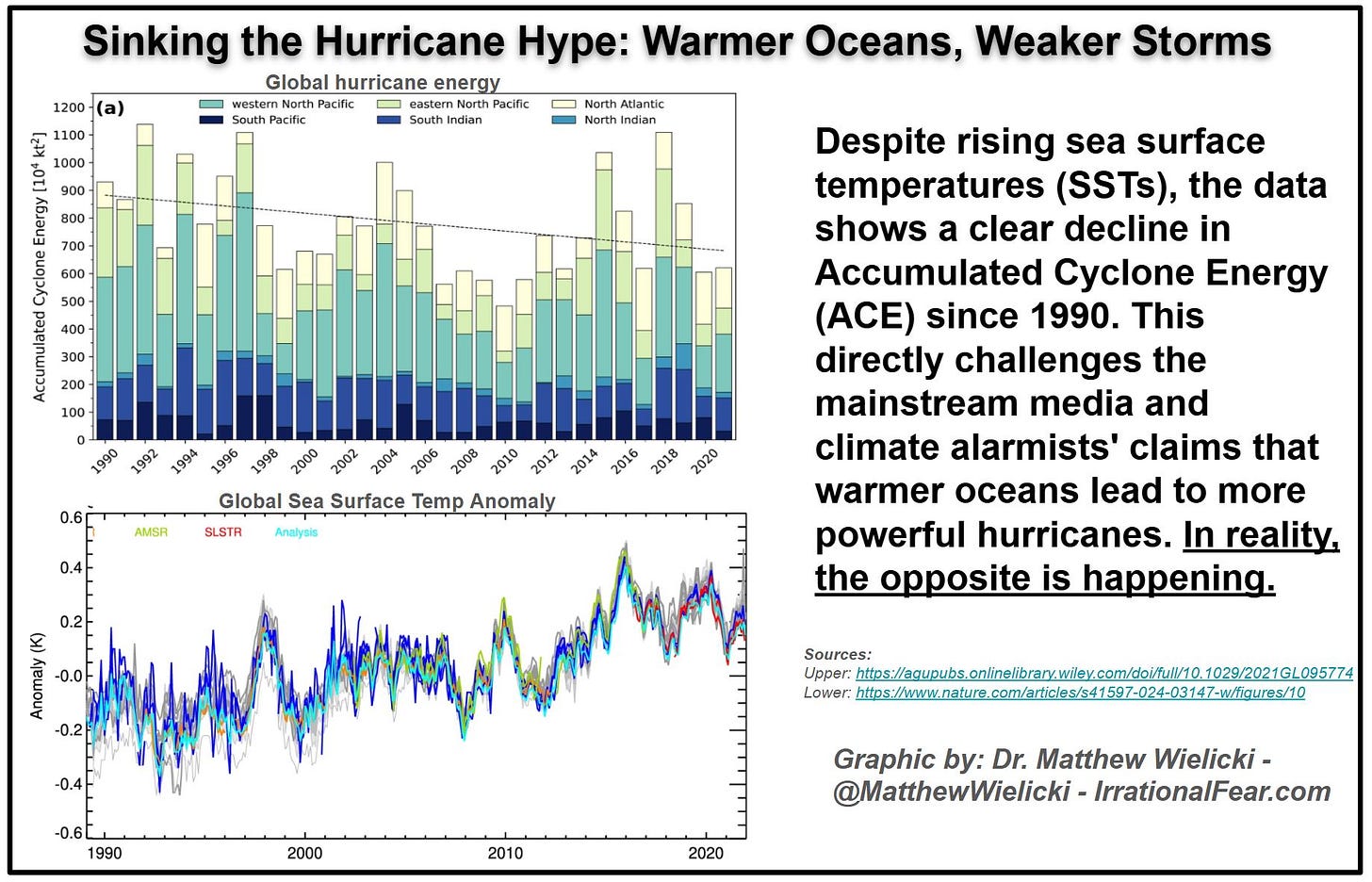 Media outlets are quick to link this to “intensifying disasters,” but the data tells a different story. Take hurricanes: despite rising sea surface temperatures (SSTs), accumulated cyclone energy (ACE) – a far more reliable metric than cherry-picked storm counts – has been declining since 1990.